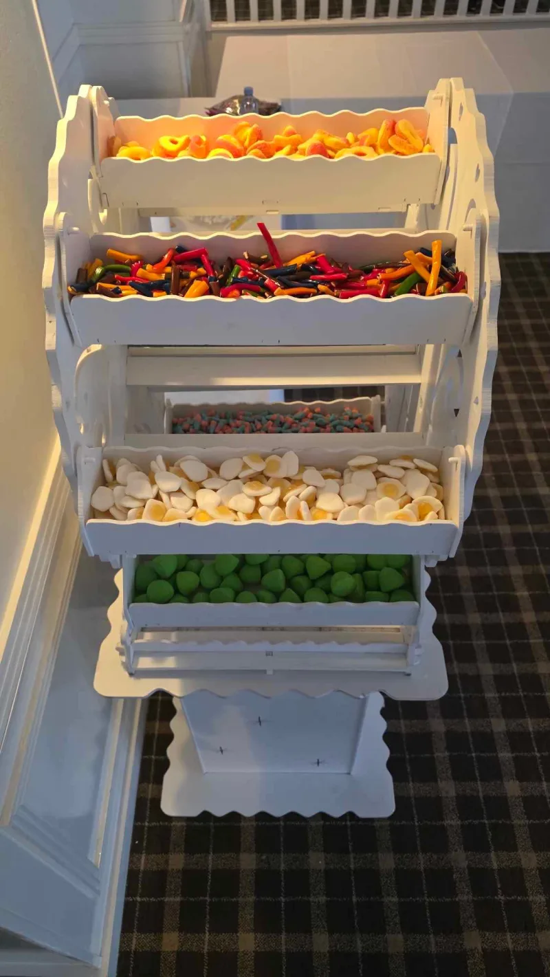 Step right up and take your taste buds for a spin! Our Sweet Ferris Wheel isn't just a showstopper - it's a sugar-filled ride of joy. Perfect for parties, weddings, birthdays, or just a random Tuesday when you need an excuse to eat your body weight in sweets.
