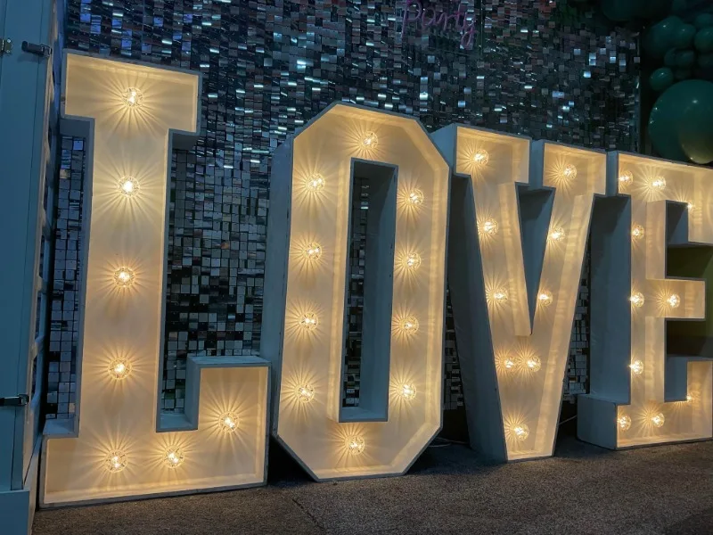 LED Love Letters are the perfect way light up your event, especially for a wedding or anniversary! Each letter is 4 feet high and 2 feet wide.